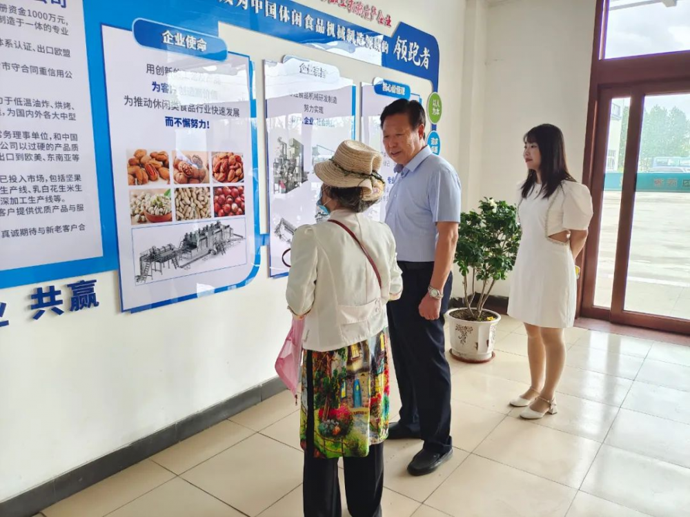 花生機械和堅果炒貨設備近日,中國食品工業(yè)協(xié)會堅果果干專業(yè)委員會常務副會長翁洋洋率領協(xié)會工作人員一行,蒞臨我司進行考察調研,并就相關設備技術進行指導工作。