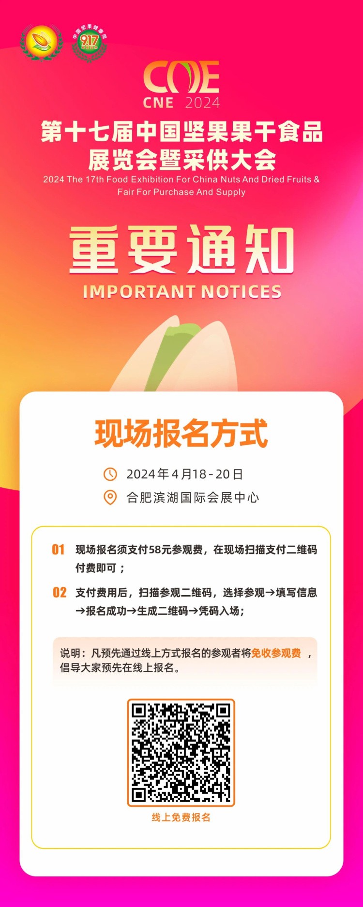 4月18-20日,第十七屆中國堅(jiān)果炒貨干果果干食品展覽會(huì)暨采供大會(huì)將在合肥濱湖國際會(huì)展中心盛大開幕!